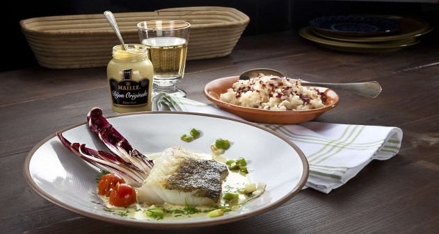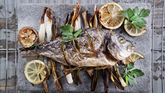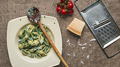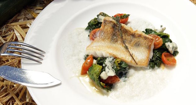 Zander mit Spinat, Kirschtomaten und Gorgonzola